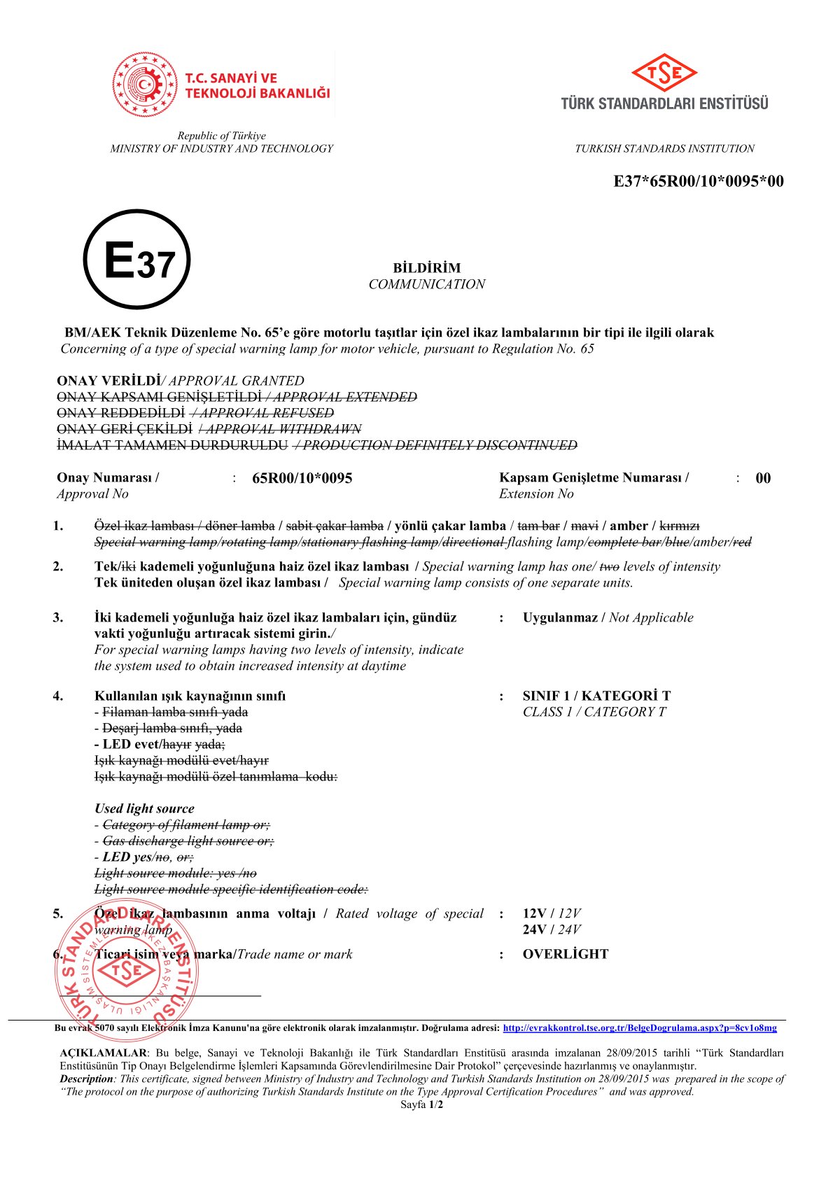 OVERLİGHT E 37 AMBER